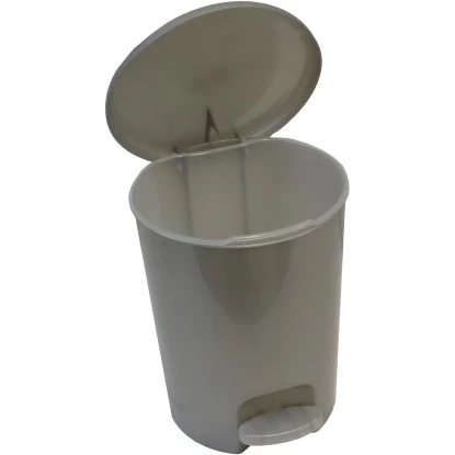 Der Kunststoff-Treteimer in der Farbe Silber überzeugt durch einfache Handhabung. Das Fassungsvermögen dieses eleganten Kosmetikeimers beträgt 5 Liter.