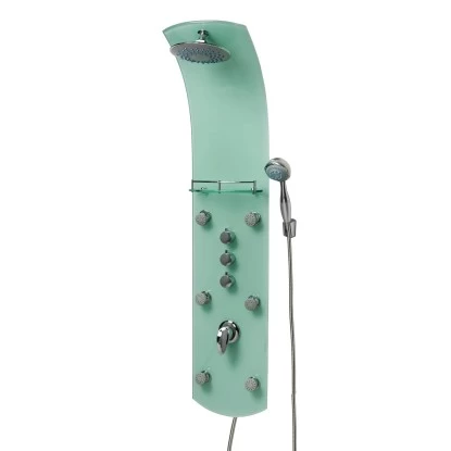 Duschsäule aus türkisfarbenem Sicherheitsglas, für Eckmontage geeignet