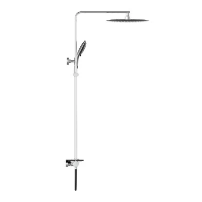 Die großformatige, sehr flache Kopfbrause mit einem Durchmesser von etwa 30 Zentimetern sorgt für einen großflächigen Wellnessregen und eine Wellness-Handbrause für den gezielten Einsatz mit fünf Funktionen: Spray, Nebeldusche, Massage, Spray-Nebeldusche, Spray-Massage. Gewechselt wird bequem mit dem integrierten Umsteller. Die Antikalk-Noppen an den Brauseköpfen sorgen für die einfache Entfernung von Kalkrückständenund machen das Reinigen zum Kinderspiel.