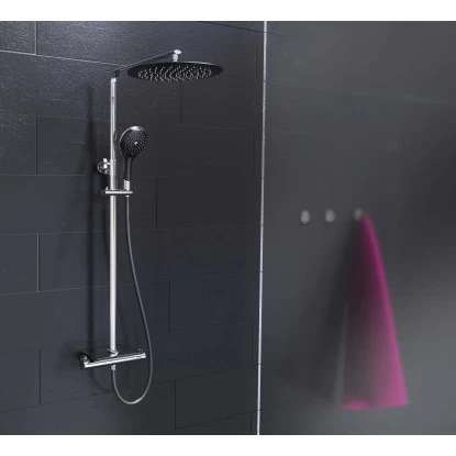 Der Gedanke, das Badezimmer sei nur der Ort für die tägliche Hygiene, gehört schon lange der Vergangenheit an. Die Hochglanz-verchromte Duschsäule Easy Vital im modernen Design fügt sich elegant in viele Badezimmerstile ein. Die hochwertige Duschsäule hat eine höhenverstellbare Edelstahl-Brausestange von 75 – 118 cm und einen Edelstahl-Brauseschlauch Soft Weiß 150 cm groß mit Standard 1/2 Zoll Anschluss. Auf der klippbaren Ablage haben Sie zudem Platz für Ihre Dusch- und Badutensilien, die auch nach Bedarf entfernt werden kann. Die integrierte Thermostatarmatur sorgt für eine gleichmäßige und komfortable Temperaturregulierung und minimiert das Risiko für Verbrühungen dank der integrierten Sicherheitssperre bei 38 °C. Die mitgelieferte Wasserspardichtung ermöglicht bis zu 50 % Wasserersparnis. Ein komplettes Montage-Set mit leicht verständlicher Anleitung ist natürlich auch dabei.