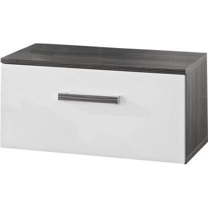 Die Badmöbel-Serie Candia überzeugt durch ihr modernes und geradliniges Design. Die hochwertig verarbeiteten Möbel werden sofort zum Blickfang und setzen ausgefallene Akzente. Der dunkle Korpus in Pinieanthrazit bildet einen hervorragenden Kontrast zu den weißen Hochglanzfronten. Die Badmöbel schaffen eine Menge Stauraum, sodass Ihr Badezimmer immer sauber und ordentlich gehalten werden kann. Dank der glatten Oberfläche lassen sich die Möbel besonders einfach reinigen, verwenden Sie dazu einfach lauwarmes Wasser und ein mildes Reinigungsmittel.