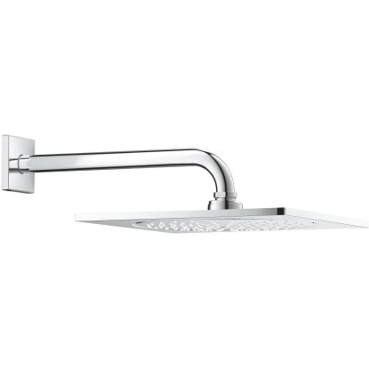 Die Kopfbrause mit großem, viereckigem Auslauf hat einen breiten Strahl der bei Ihnen Zuhause für besondere Duschmomente sorgt. Der Rain Strahl bietet einen angenehmen Wasserstrahl, der einem warmen Sommerregen gleicht. Durch die Ausladung des Brausearms von 275 mm reicht die Brause weit genug in die Dusche, damit Sie mehr Platz für die Körperpflege haben. Dank Grohe DreamSpray wird das Wasser gleichmäßig verteilt, so wird für ein perfektes Strahlbild gesorgt. Dabei lässt sich die Brause besonders leicht von Kalk befreien. Durch das Antikalk-System SpeedClean lassen sich Kalkablagerungen an den Düsen einfach mit dem Finger abwischen.