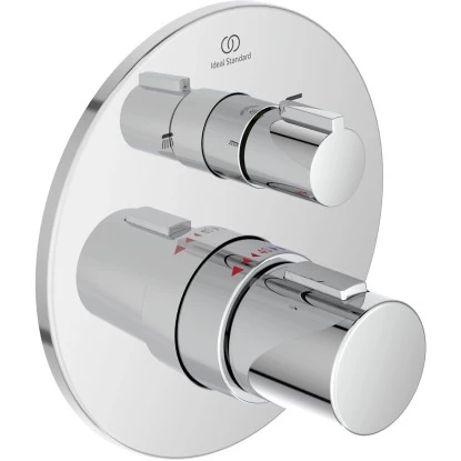 Der Ideal Standard Badethermostat Ceratherm T100 bewährt sich mit ergonomischen Design und einem unvergleichlichen Maß an Haltbarkeit, Sicherheit und Leistung. Dieses Thermostat verfügt über eine Absperrung und Umstellung, mit der Sie zwischen den beiden angeschlossenen Verbrauchen wechseln.