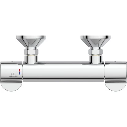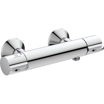 Das Ideal Standard Brausethermostat Ceraplus Safe erfüllt souverän alle Vorgaben an Hygiene- und Infektionskontrolle, bietet maximale Sicherheit, eine hohe Produktqualität, sowie sparsamen Wasserverbrauch. Die Stand- und Wandarmaturen verfügen über einen selbst entleerenden, nickelfreien Auslauf. Drei verschiedene Gri?hebelvarianten ermöglichen maximalen Bedienungskomfort. Die Bade- und Brausethermostate besitzen eine thermische Entkopplung und damit maximale Sicherheit vor einem überhitztem Armaturenkörper. Alle CeraPlus-Thermostate ermöglichen eine thermische Desinfektion, ohne Demontage des Gri?es. Das Brausethermostat von Ideal Standard ist für die thermische Desinfektion geeignet. Mittels mitgeliefertem Spezialwerkzeug verfügt es über einen Rück?ussverhinderer. Der Bedienungshebel besteht aus Metall und verfügt über eine permanente Rot- und Blau-Markierung für die Temperatureinstellung. Durch die thermische Entkopplung wird die Wärmeübertragung von der Warmwasserseite auf die Kaltwasserseite bei geschlossener Armatur reduziert.