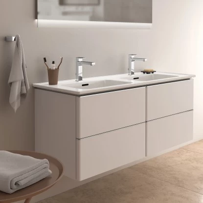 Der Ideal Standard Doppel-Waschtischunterschrank aus der Serie Adapto vervollständigt Ihr Bad auf elegante und funktionale Weise.