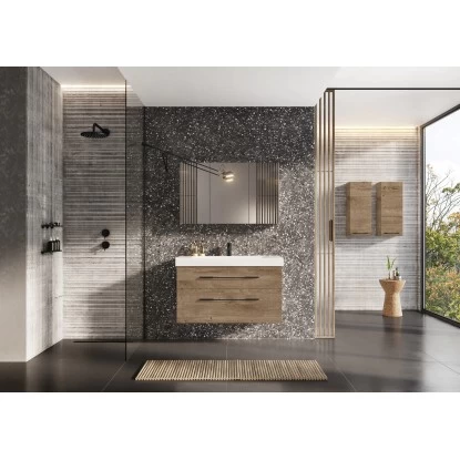 Der Maximus Hängeschrank Madrid überzeugt durch das moderne Design und die hochwertige Verarbeitung, wodurch er zu einer formschönen Ergänzung in jedem Bad wird. Bei den Dekoren werden vier verschiedene Varianten angeboten, sodass Sie Ihr Bad ganz nach Ihren individuellen Wünschen gestalten können. Ein schwarzer Griff rundet die attraktive Optik gekonnt ab. Hinter einer Tür verbergen sich Ablageböden, wodurch viel Platz für Ihre Bad- und Kosmetikutensilien geschaffen wird. Die Schranktür besitzt für einen stets sanften Anschlag gedämpfte Scharniere.