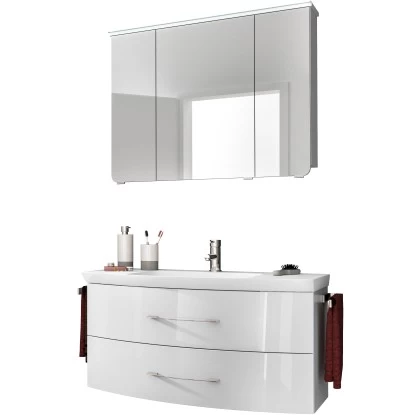 Das Pelipal Badmöbel-Set Quantum 01 in Weiß überzeugt als praktisches und optisch ansprechendes Set. Die Möbel sind aus hochwertigem Material und überzeugen mit ihrem geschwungenen, modernen Design. Außerdem sind sie bereits vormontiert, einzig die Türen müssen Sie noch selbst anbringen. So sparen Sie einiges an Zeit und Aufwand.