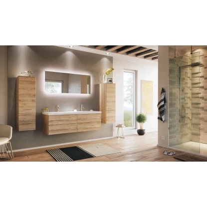 Ein exclusives Badmöbel-Set für gehobene Einrichtungsträume in großen Badezimmern. Während Ihnen der besonders großzügige Doppelwaschplatz ein hohes Maß an Komfort verspricht, stellen die Fronten in Anthrazit Seidenglanz die Hochwertigkeit ebenso gekonnt unter Beweis, wie das Keramikbecken mit klaren Linien und die Schubkästen mit Softclose.