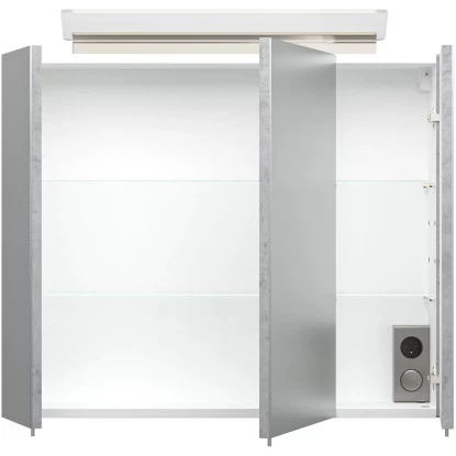 Sämtliche Ansprüche an einen Spiegelschrank finden Sie hier erfüllt: Neben der atmosphärischen Beleuchtung ist zusätzlich an der Seite der An- und Ausschalter sowie eine praktische Stromsteckdose angebracht. Hier können Sie beispielsweise Ihren Fön oder Rasierer ganz ohne Kabelsalat einstecken. Die Türe schließt sanft mit dem Soft-Close-Schließsystem. Die hochglänzende weiße Beschichtung ist wasserabweisend.