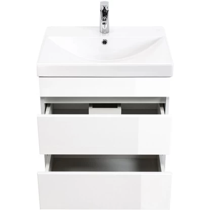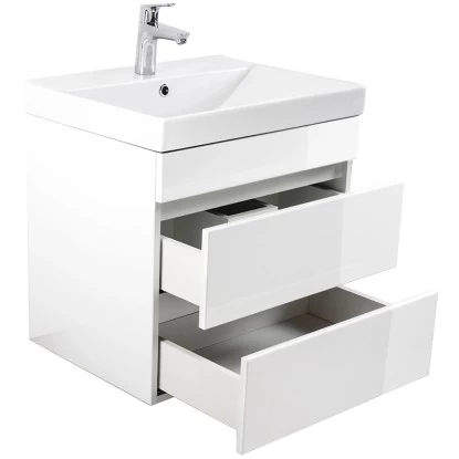 Der Posseik Waschplatz Amilia in Weiß und Hochglanz ist die elegante Kombination aus Waschbecken und Waschbeckenunterschrank für Ihre Badezimmereinrichtung. Auf 60 cm Breite mit zwei Schubladen bietet sich ausreichend Stauraum für die täglichen Badutensilien.