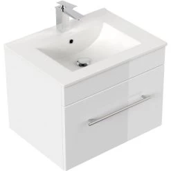 Das Badmöbel-Set Viva zeichnet sich durch modernes Design und hochwertige Qualität aus. Die Serie ist in verschiedenen Farben erhältlich und bietet tolle Kombinationsmöglichkeiten. Das formschöne Keramikwaschbecken ist pflegeleicht und wird einfach auf den Waschbeckenunterschrank aufgesetzt. Die Fronten der Möbel sind auch über die Kanten und Ecken mit einer hochwertigen Beschichtung versehen. Die weichen Kanten verleihen dieser Möbelserie eine schöne 3D-Optik. Der Korpus ist in Weiß matt gehalten während für die Fronten sowohl die Farben Weiß Hochglanz, Schwarz und Anthrazit als auch eine edle Betonoptik zur Auswahl stehen. Die Schubladen und ggf. Türen schließen mit der bequemen Soft-Close-Funktion und ziehen sich selbstständig auf den letzten Zentimetern sanft ein.