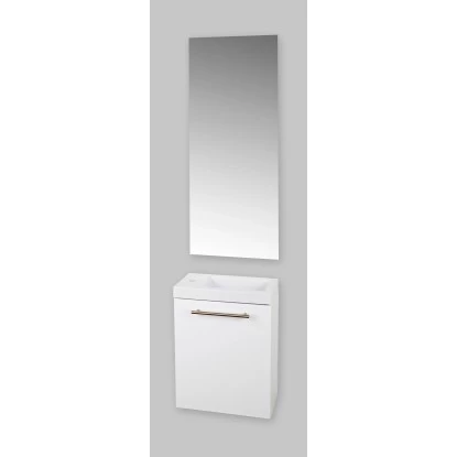 Das 3-teilige Sanotechnik Handwaschbecken Set besteht aus einem Waschbeckenunterschrank, einem Waschbecken und einem Spiegel. Das moderne Design und die hochwertige Verarbeitung werten jedes Badezimmer optisch auf.