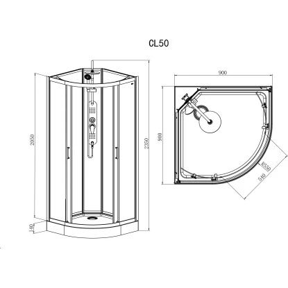 Sanotechnik Komplettdusche Epic Rund Schwarz 235 Cm X 90 Cm X 90 Cm -Badezimmerbedarf Geschäft 952526 4633 CL50 Skizze 2