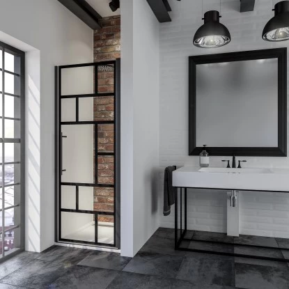 Die AlexaStyle 2.0 „BlackStyle“Drehtür in Nische von Schulte wird einen exklusiven Hingucker in Ihrem Bad darstellen: Das 5 mm starke Sicherheitsglas (ESG) punktet mit einem modernen Dekor in Mattschwarz und verleiht Ihrem Bad einen frischen Loft-Charme. Das nach DIN Norm hergestellte Sicherheitsglas kennzeichnet sich außerdem durch seine zuverlässige Stabilität, die selbst hohen Belastungen standhält. Die dezente Teilumrahmung aus Aluminiumprofilen in der Farbe Mattschwarz rundez die Optik der Drehtür ab und sorget für eine zuverlässige Dichtigkeit.