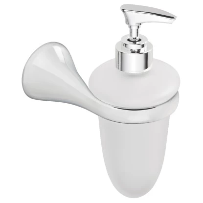 Der Seifenspender aus Milchglas wird mit der modern geschwungenen verchromten Halterung an der Wand montiert. Das Befestigungsmaterial ist im Lieferumfang enthalten.