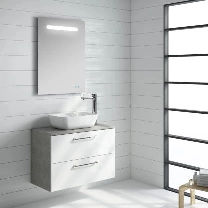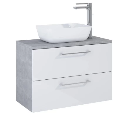 Der Waschbeckenunterschrank Cheese zeichnet sich durch ein modernes Design und eine hochwertige Verarbeitung aus. Der Korpus ist in einer Beton Koloristik gehalten und die Front im klassischen Weiß. Der Waschbeckenunterschrank verfügt über zwei Schubladen, die mit einem Soft-Close-System ausgestattet sind, welches ein einfaches und geräuschloses Schließen ermöglicht. Er ist zur einfachen Selbstmontage geeignet und mit dem ebenfalls erhältlichen, nicht im Lieferumfang enthaltenen Waschbecken schaffen Sie ein harmonisches Gesamtbild.