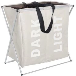 Er bietet jede Menge Platz für die Wäsche bis zum nächsten Waschgang, durch die zwei praktischen Fächer mit je 60 l Fassungsvermögen kann die Wäsche vorab ganz einfach nach Farben oder Temperatur getrennt werden. Der Wäschekorb ist aus hochwertigem, strapazierfähigem Polyestergewebe gefertigt. Die stabilen Trageriemen eignen sich zum bequemen Transport der Wäsche und die praktische Netzabdeckung mit Zugband-Verschluss verhindert das Rausfallen der Kleidungsstücke.